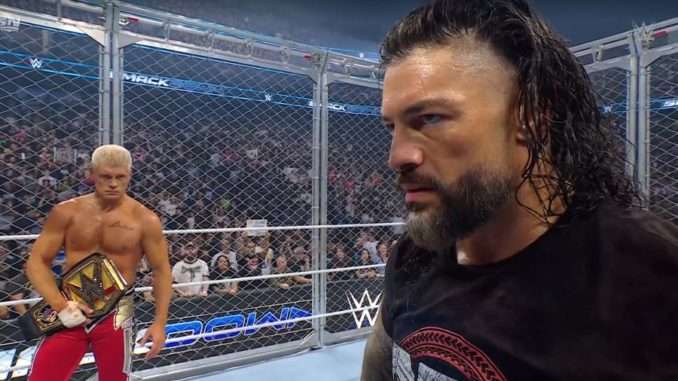 Rhodes crawled toward the cage door but was stopped by Sikoa. Rhodes reversed a Samoan Spike into a Cross-Rhodes, giving him the win in 16 minutes and keeping his run as WWE Champion alive.