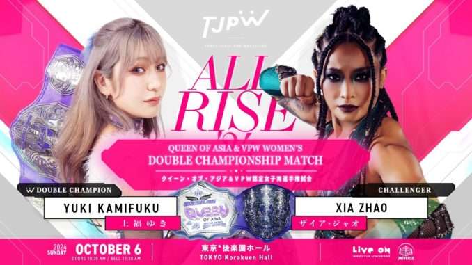 Tokyo Joshi Pro Wrestling is presenting their ‘ALL RISE’ show from Korakuen Hall on October 6th. One of the promoted matches was Xia Zhao (TNA’s Lei Ying Lee) challenging Yuki Kamifuku for the Queen of Asia and VPW Championships.