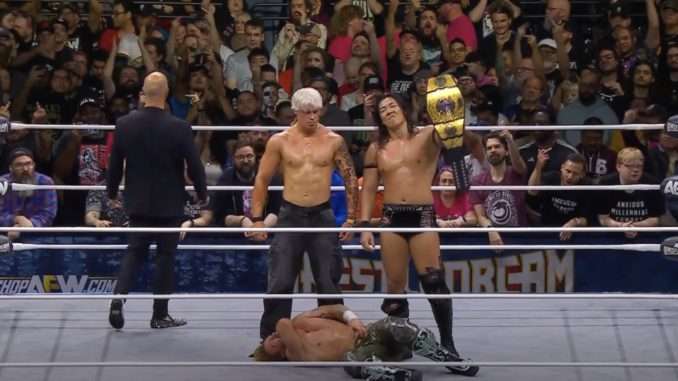 At the end of a breathtaking three-way match, Kyle Fletcher betrayed Will Ospreay to hand the AEW International Title win to Konosuke Takeshita.