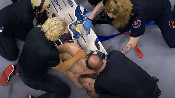 Danielson was placed on a stretcher in a somber scene as the pay-per-view went off the air.