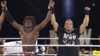 Ricochet gets on the mic and says that Kyle Fletcher & Konosuke Takeshita made a mistake in allowing him to choose any partner. Ricochet says he found out that as of October 4th, someone’s contract with The Don Callis Family expired and brings out his real pissed-off partner in Powerhouse Hobbs. Ricochet & Hobbs run in and go after Takeshita & Fletcher to start the match. Ricochet gets taken out on the outside as Hobbs takes down Takeshita & Fletcher in the ring. Ricochet & Hobbs stay in control on the outside. Back in the ring, Ricochet gets on Hobbs shoulders and moonsaults off of him to the outside onto Fletcher & Takeshita. As the referee holds Hobbs back, Takeshita & Fletcher are able to take control over Ricochet as we go to picture-in-picture.