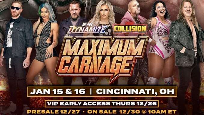 AEW is headed to Cincinnati in January to stage editions of Dynamite and Collision with “Maximum Carnage” branding.