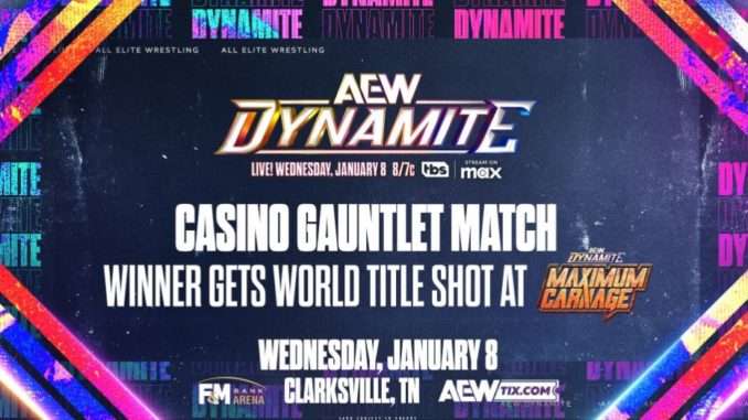 The next challenger to Jon Moxley’s reign as top champ will be determined on the January 8 episode of Dynamite, when a Casino Gauntlet match will take place. The winner will go on to meet Moxley as part of Dynamite: Maximum Carnage a week later.