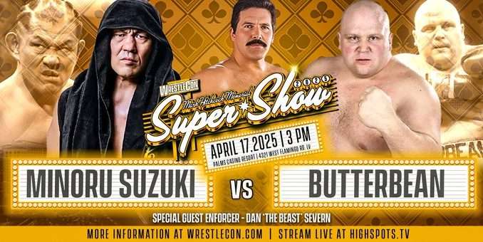 It was announced that infamous boxer Butterbean is going to be in action against Minoru Suzuki. Taking on the guest refereeing duties will be UFC Hall of Famer and former NWA Worlds Heavyweight Champion Dan Severn.