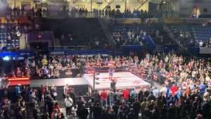 But if you go up one long, mesmerizing escalator, turn, then go up yet another long escalator, you’ll eventually find the Mattamy Athletic Centre, a 2,700-capacity hockey rink which, on Saturday evening, doubled as a venue for Maple Leaf Pro Wrestling’s “Northern Rising” pay-per-view card.