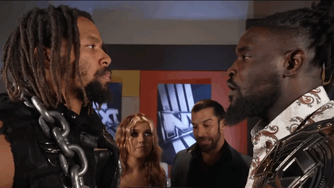 On Tuesday’s program, a contract signing occurred between Oba Femi and Jasper Troy for a championship match on the June 10 edition of NXT.