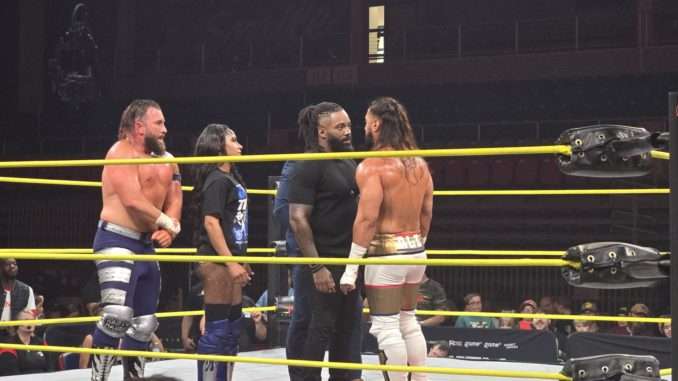 Announcers Tom Hannifan and Matthew Rehwoldt cited the pair’s history, referring to their “Heart and Soul” feud in WWE as members of 205 Live, which included a match on the kickoff portion of WrestleMania 34 in 2018.