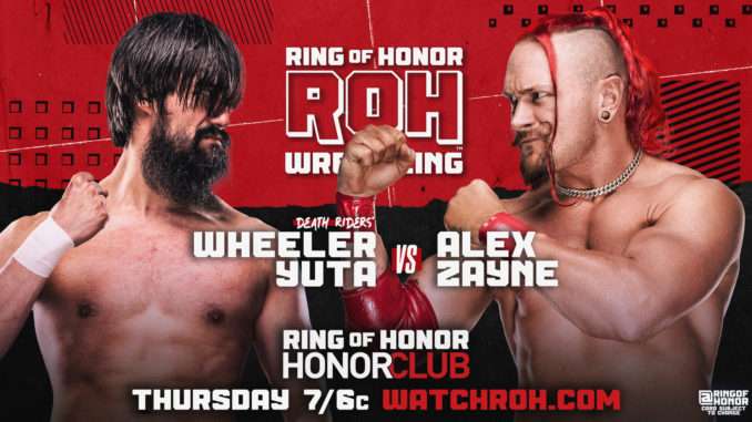 Alex Zayne will make his return to ROH TV this Thursday, appearing in singles action against former Pure Champion Wheeler Yuta. The match, announced today, was taped last week during an AEW event in Kent, Washington.