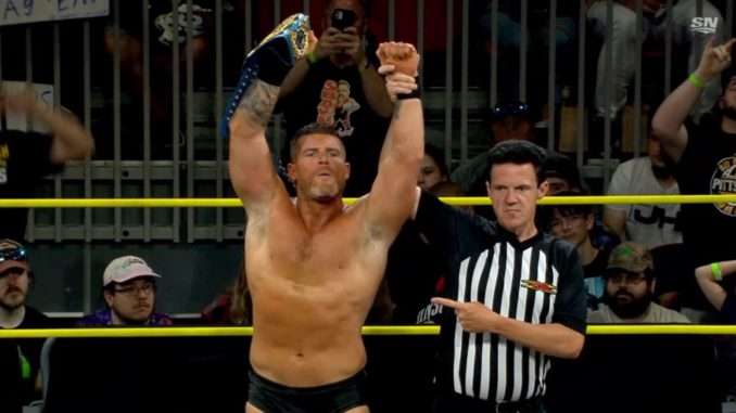 Something got back into the ring to break a pin attempt from Maclin. He then also got a near fall with a massive powerbomb onto the champ. Something tried setting up a move in the corner with Maclin. Warner got involved, causing a three-man superplex move which wiped out everyone.