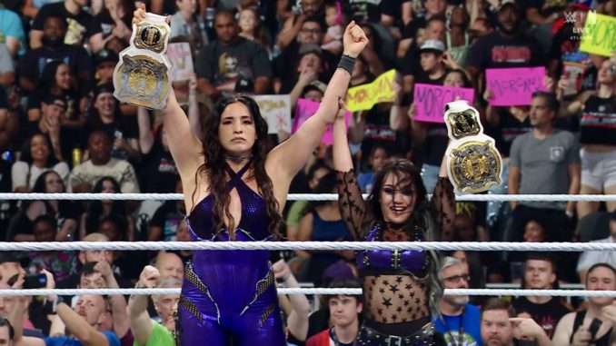 The pair prevailed at WWE Evolution in a four-way match that also included Charlotte Flair & Alexa Bliss, Asuka & Kairi Sane, and Sol Ruca & Zaria.