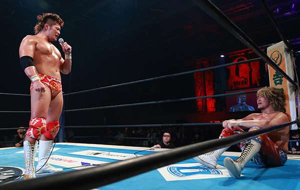 EVIL’s victory over Ryohei Oiwa came with assistance from House of Torture. Oiwa fought off interference from Dick Togo and Don Fale, and received help from Hartley Jackson, who removed Fale from ringside. However, after Togo threw powder in Oiwa’s eyes, EVIL locked in the Darkness Scorpion for the submission win.