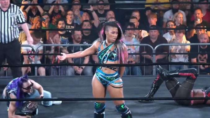 Blaze came to the ring unannounced on Friday’s show at the Crystal Palace National Sports Centre, stating that she was ready to fight anyone. Answering her challenge was Athena, who has held the ROH Women’s World Championship for nearly 1,000 days.