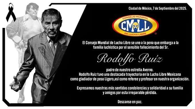 Rodolfo Ruiz (86) passed away today. He is the father of CMLL wrestler Averno (who is scheduled to main event Arena Mexico in ~3 hours). A smaller sized wrestler who held titles in the Lightweight/Featherweight divisions. Worked as a CMLL referee & trainer after retiring. QEPD pic.twitter.com/XGUYxw7gnf