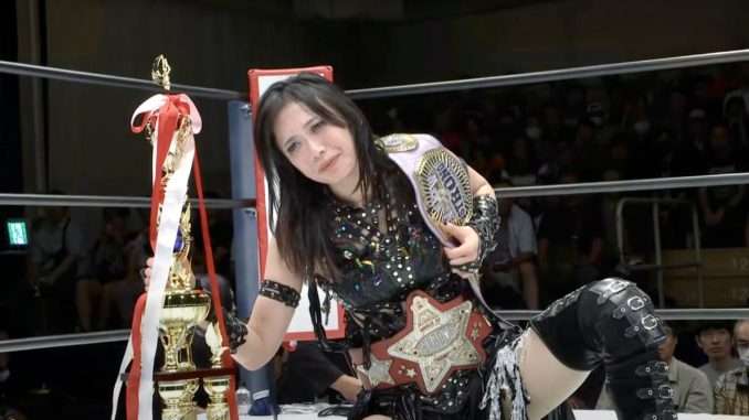 Saya Kamitani added a second title to her collection on Saturday, defeating AZM to retain the World of STARDOM Championship and win the NJPW STRONG Women’s Championship.