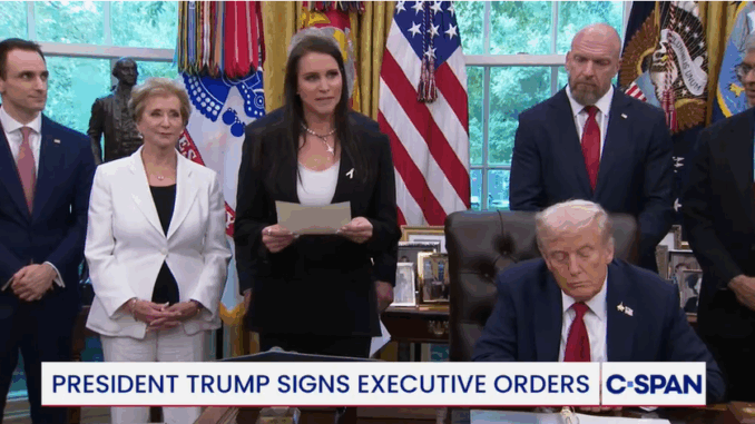 Stephanie spoke in the Oval Office alongside her husband and mother, Linda McMahon, about her history of advocating for pediatric cancer research and the late Connor Michalek.