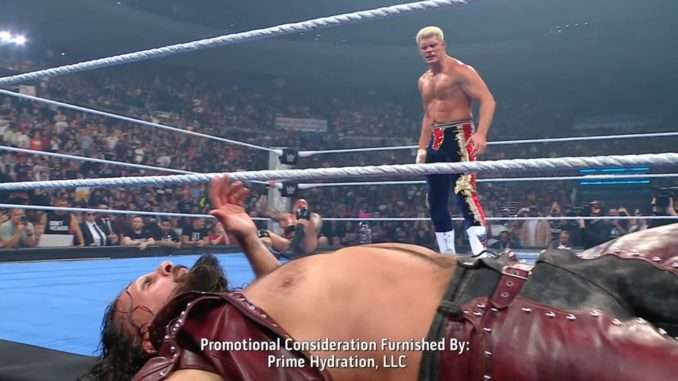 This week’s episode of WWE Friday Night Smackdown, from the Heritage Bank Center in Cincinnati, Ohio, opened with Cody Rhodes an appearance from Cody Rhodes. We knew he’s going to appear tonight in tag action, but just not yet, as he came to the ring dressed in a suit.