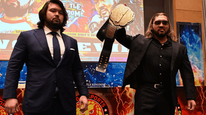 The previously announced match involving EVIL and Wolf will now include the former’s championship being defended, as stated during a press conference to promote the January 4 event at the Tokyo Dome.