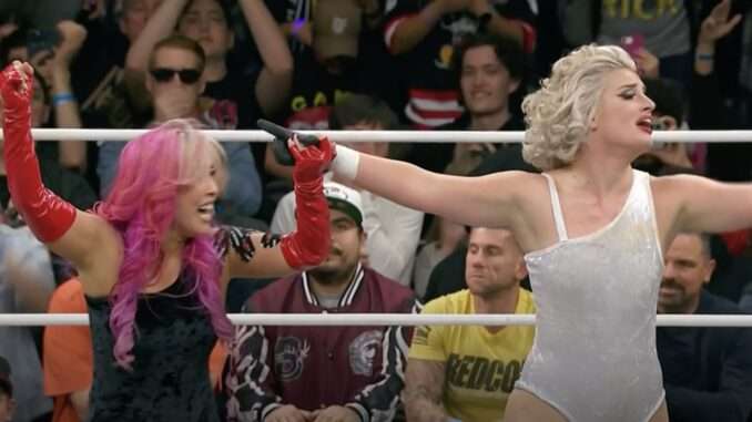 The “Timeless Love Bombs” were victorious in a four-way match that stipulated the winners may determine the match type for their upcoming semi-final contest. The match also included The Sisters of Sin (Julia Hart and Skye Blue), The Babes of Wrath (Willow Nightingale and Harley Cameron), and the team of Marina Shafir and Megan Bayne.