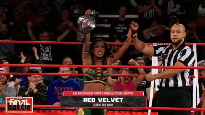 SHE DID IT! #ANDNEW #ROH Women's World TV Champion @Thee_Red_Velvet!