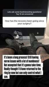 It’s been a long process! Still having nerve issues with a lot of numbness! But accepted that it’s gonna take time. Really thought I’d have returned to the ring by now but can only control what I can.