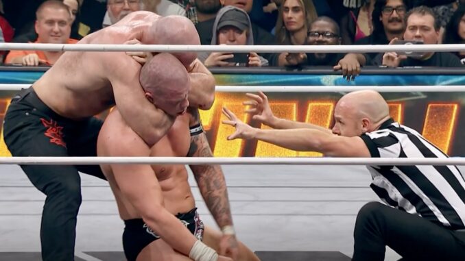 This distraction allowed Moxley to capitalize. After Fletcher kicked out of a Paradigm Shift and a Death Rider, Moxley locked in a rear-naked choke. Fletcher refused to tap but eventually passed out, forcing the referee to call for the bell.
