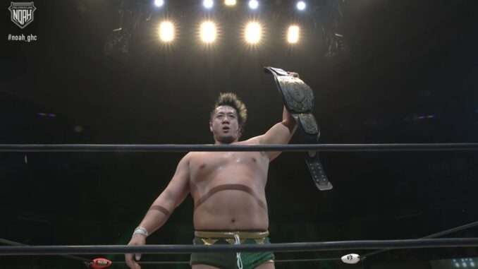 Alpha Wolf betrayed his brother, Dragon Bane, to capture the GHC National Championship and join NOAH’s biggest heel faction on Thursday night. After the duo battled for 10 minutes in a clean, respectful manner, Alpha Wolf used dirty tactics to earn the win and title.