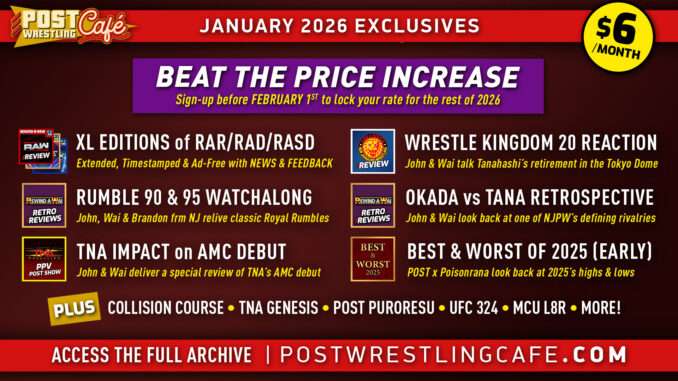 This month on the POST Wrestling Café includes the Best & Worst of 2025, several live Rumble Watch Alongs, and a retrospective on a legendary rivalry.