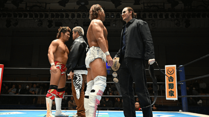 A face-off with the IWGP tag champions ended the show, along with a spirited address by Umino in advance of their title match on February 11 at New Beginning.