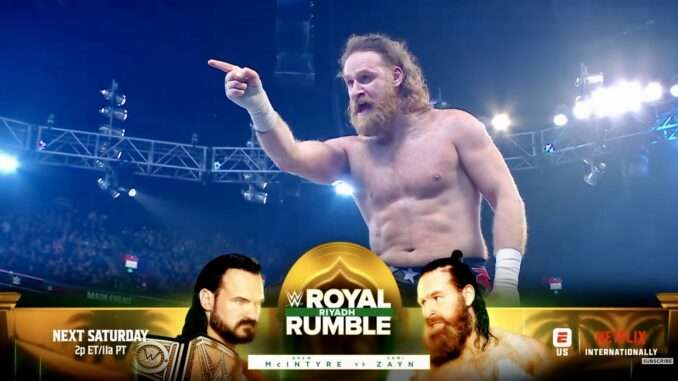 Zayn is now scheduled to challenge McIntyre for the title at the Royal Rumble next week in Riyadh, Saudi Arabia.