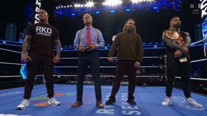 WWE SmackDown from Saudi Arabia kicked off with Cody Rhodes cutting an in-ring promo hyping up the crowd ahead of tomorrow’s Royal Rumble event. Rhodes ran down Drew McIntyre and discussed winning the Rumble for a third time, prompting the crowd to boo. Cody turned his attention to CM Punk, saying they had to match up eventually. This brought out Randy Orton, who pointed out that Cody wasn’t the only one who had won the Rumble twice. This brought out Jey Uso and, shortly thereafter, Sami Zayn. Zayn noted that he has never beaten Drew McIntyre, but he has never lost a match in Saudi Arabia.