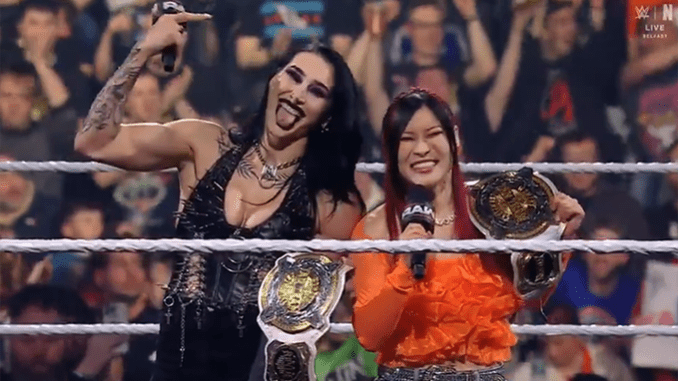 Rhea Ripley & IYO SKY will defend the women’s tag titles against Giulia & Kiana James tonight. The challengers won a three-way match against Charlotte Flair & Alexa Bliss and Nia Jax & Lash Legend on the January 23 episode to earn the title match.