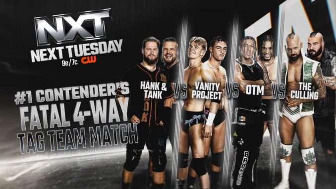 The bout was originally scheduled to just be a three-way with former champs Hank & Tank facing OTM and The Culling. However, after Ricky Smokes and Brad Baylor of The Vanity Project scored a win against Hank & Tank on this week’s NXT, they were able to sneak into the booking as well.