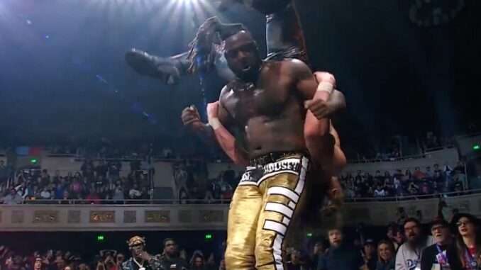 Prior to this match, Knight offered that if Beast Mortos could beat him, they would give him and any other members of LFI a Trios Championship match this Saturday on Collision. Mortos dominated through the commercial break as the crowd chanted “he’s a lawyer” and “he will sue you”. Tony Schiavone said that JetSet Rodeo has had an incredible run thus far, but they have yet to have a single match since winning the titles in January. The crowd was really into both participants in this match, but Knight pulled it out with the UFO Splash, so no title match for LFI.