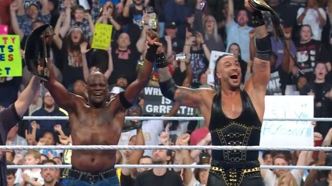 The first match of the night saw Damian Priest teaming with (newly bald) R-Truth to take on Tag Team Champions Tama Tonga and JC Mateo. It was noted that “an element of the Freebird rule” was being used as Solo Sikoa and Tama Tonga, who had actually won the titles. Early in the match, Talla Tonga got involved behind the referee’s back, giving the Champions the advantage as the match went to commercial. Upon return, things built to a hot tag to R-Truth, who promptly utilized most of John Cena’s moveset. Truth applied the STF to JC Mateo, but the MFTs got involved again, nearly pinning Truth. The Wyatts then appeared, and a brawl ensued. Truth hit the AA on Mateo and got the pinfall. Truth and Priest are the new WWE Tag Team Champions.