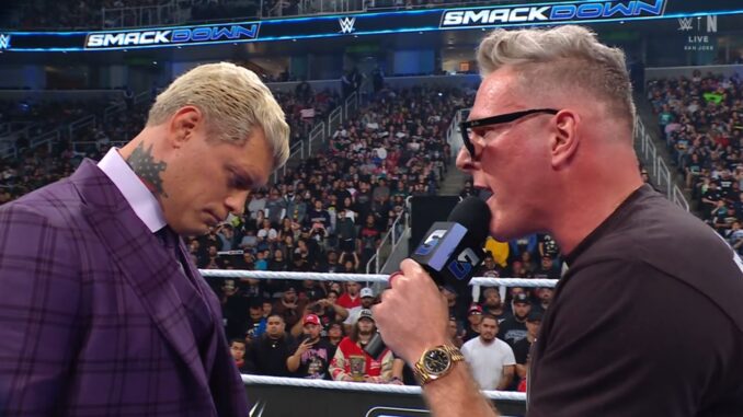 This week’s episode of WWE Friday Night Smackdown, the second-last show before Wrestlemania goes down, took place from the SAP Center in San Jose, California. Tonight’s show got started with Undisputed WWE Champion Cody Rhodes showing up at the venue’s parking lot and asking Smackdown General Manager Nick Aldis where Pat McAfee is.