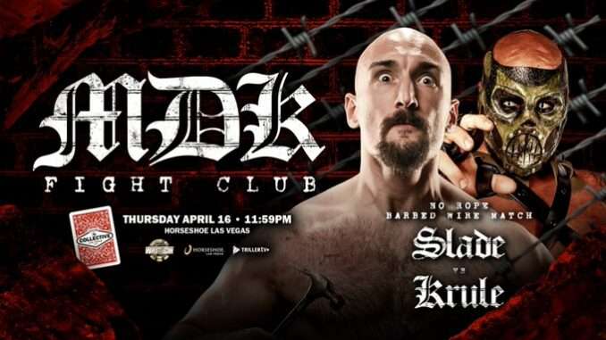 Former MLW World Heavyweight Champion Krule, who was originally booked to face Slade in a No Rope Barbed Wire Match as part of GCW’s MDK Fight Club card on Thursday, is no longer listed on the show’s latest lineup. Instead, Dr. Redacted is promoted as Slade’s new opponent.