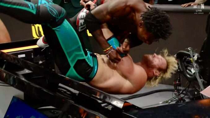 Tensions boiled over right after the final bell. Paul threw Speed out of the ring out of frustration and tossed him over the announce desk. Paul then positioned Speed on the table and climbed the turnbuckles. Jey Uso intervened by striking Paul from behind. This opening allowed The Usos to execute a 1D.