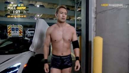 Kazuchika Okada arrived late for the CMLL World Trios Championship match, which continued past the AEW Full Gear ‘Tailgate Brawl’ pre-show window.  The broadcast concluded