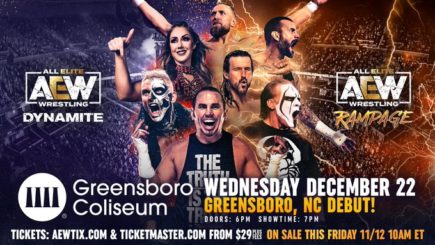 NEWS AEW to hold television tapings at the Greensboro Coliseum in December November 8, 2021 John Pollock AEW is going to a historic venue with the announcement of a Dynamite and Rampage taping at the Greensboro Coliseum.
