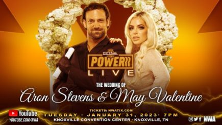 NEWS Aron Stevens & May Valentine’s wedding added to live NWA Powerrr January 3, 2023 Andrew Thompson The newest addition to the live episode of NWA Powerrr is the wedding of Aron Stevens and May Valentine